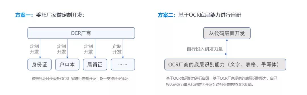 一種是委托技術提供商做定制開發:按照憑證種類委托OCR廠商進行定制開發,逐一支持各類憑證;