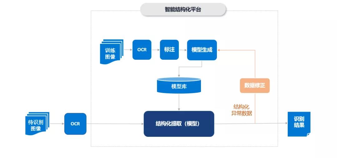 而且,平臺通過對銀行憑證的定制化訓練,實現數據結構化目的,生成的模型仍在原OCR平臺運行,架構保持不變。流程及步驟如下: