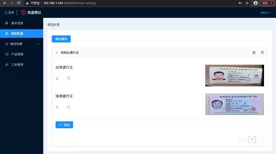 一個模型下可以定義任意數量的模塊,單個模塊下又可以包含數個版式。需要特別說明的是,模型的概念相當于一個統一的接口,通過固定的接口滿足自己的識別需求。