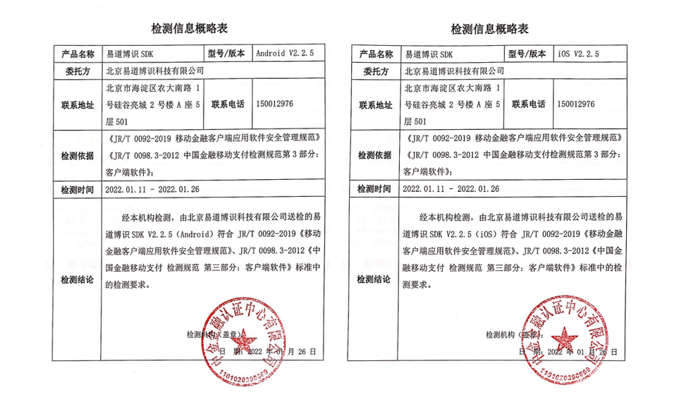 本次通過安全能力測評,是對易道博識SDK優質產品能力及符合安全合規要求的有力證明。