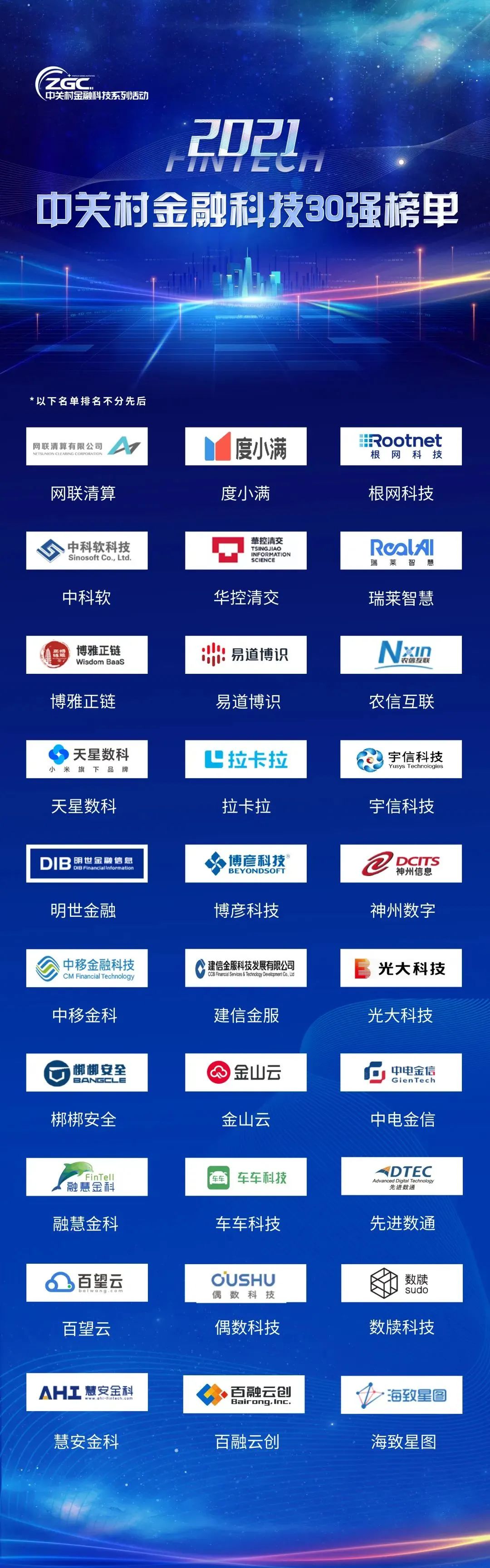 2021中關村金融科技30強榜單