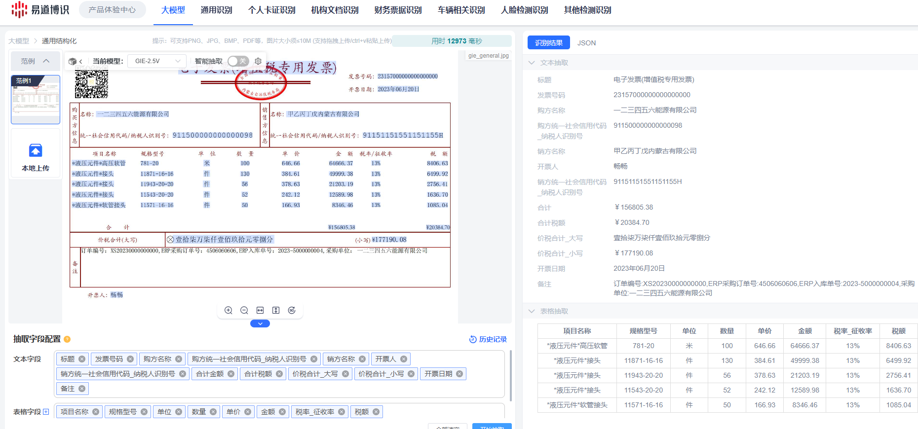 針對上述行業(yè)痛點,GIE大模型,作為一款基于海量金融文檔數(shù)據(jù)訓練的OCR大模型,深度融合版式特征與語義特征,實現(xiàn)了無預設版式的高精度識別能力。這一模型摒棄了傳統(tǒng)技術對關鍵字和固定版式的依賴,通過泛化能力,輕松實現(xiàn)對各類文檔、憑證和票據(jù)的結構化處理。