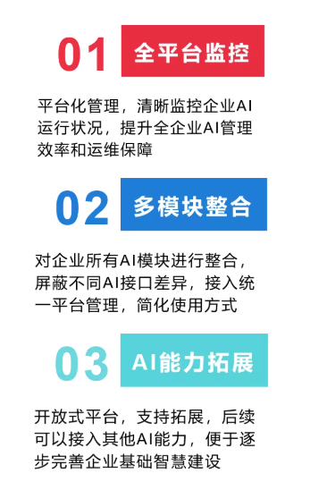 之前往往需要每個(gè)企業(yè)內(nèi)部搞一番大工程,需要專業(yè)的技術(shù)人才不說(shuō),還耗時(shí)耗力。甚至很多企業(yè)目前在使用的多個(gè)AI模塊還是處在一盤散沙的狀態(tài),無(wú)法進(jìn)行統(tǒng)一管理。