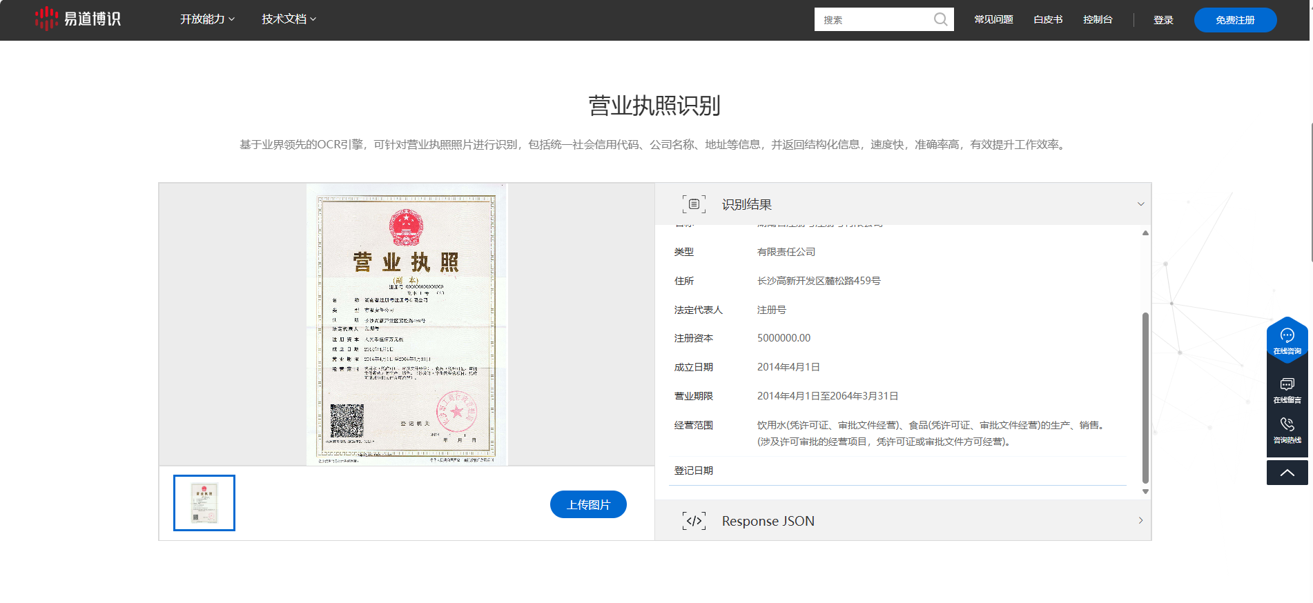 易道博識的“易識”產品線不僅在營業執照識別方面具有強大能力,還涵蓋了卡證識別、票據識別、文檔識別等多種功能,能夠滿足不同業務場景的需求。不論是金融行業的開戶、企業年檢,還是行政執法的現場檢查,易道博識的OCR技術都展現出了極高的效率和準確性。通過靈活的部署方式,“易識”產品既支持私有化部署,也可以通過API接口調用,適應不同客戶的需求。特別適合遠程開戶等對識別準確性和實時性要求較高的場景。未來,隨著技術的不斷發展,營業執照OCR識別技術將逐步拓展至更多的應用領域,為企業和個人帶來更加智能化的服務體驗。