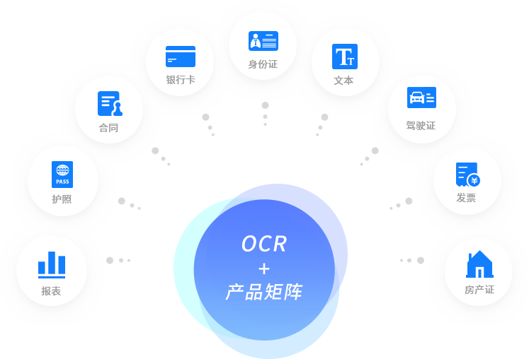 標準的OCR產品矩陣,涵蓋身份證、銀行卡、護照等多種個人證件識別產品,行駛證、駕駛證、購車發票等多種車輛票證識別產品,普通發票、增值稅發票等多種財務票據識別產品,營業執照、房產證等多種機構文檔識別產品,通用文本、財務報表、合同文本等多種通用文檔識別產品,產品自由選配,本地部署,開箱即用。