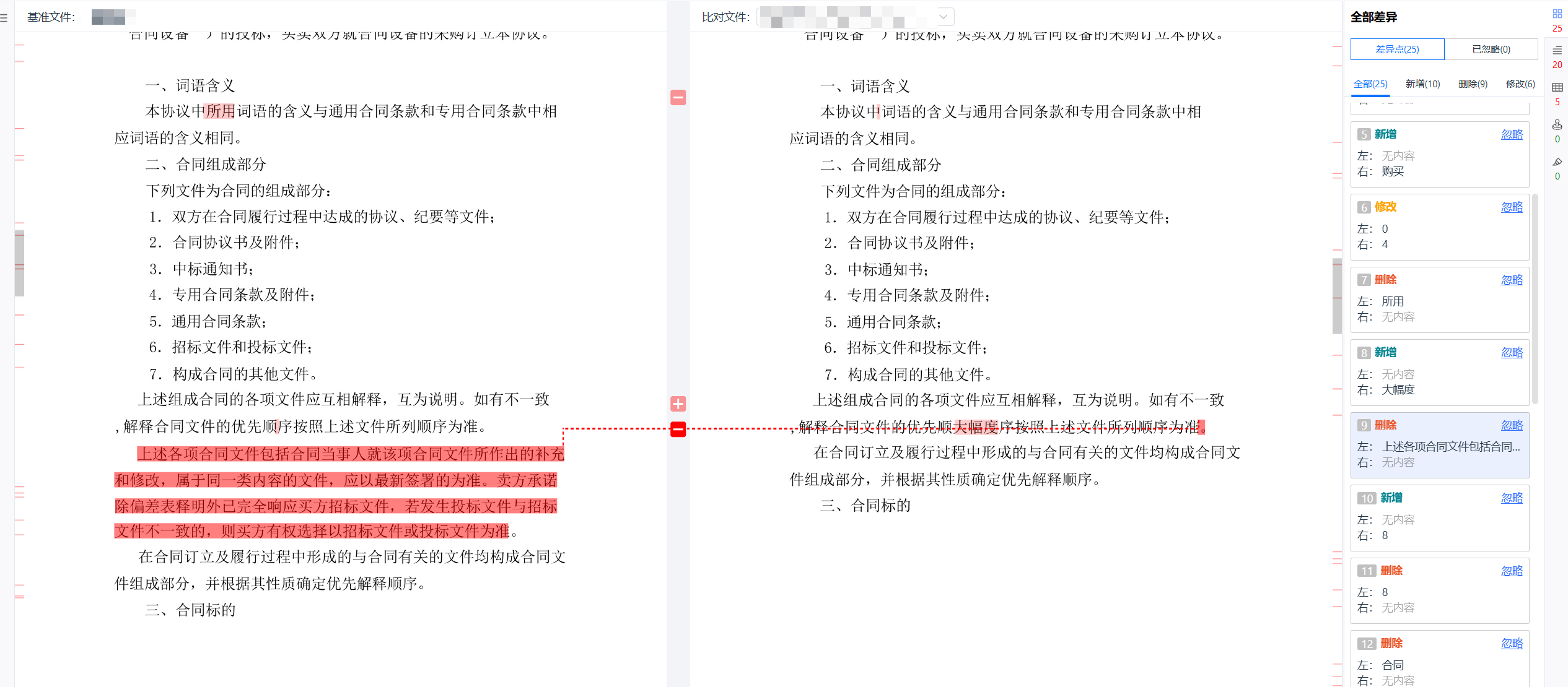差異高亮呈現:增刪改分類匯總,高亮定位差異,支持自定義比對規則,適配不同業務場景需求